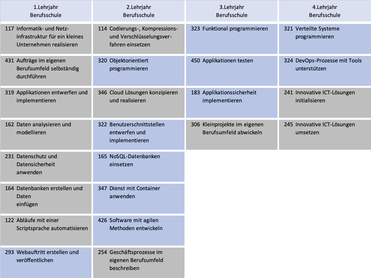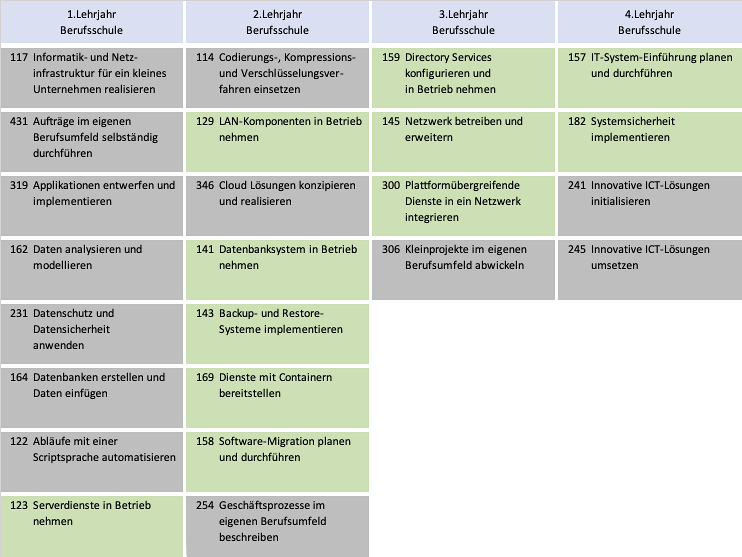 Neu gibt es bereits im ersten Lehrjahr eine Unterscheidung zwischen den Fachrichtungen bei den Modulen.